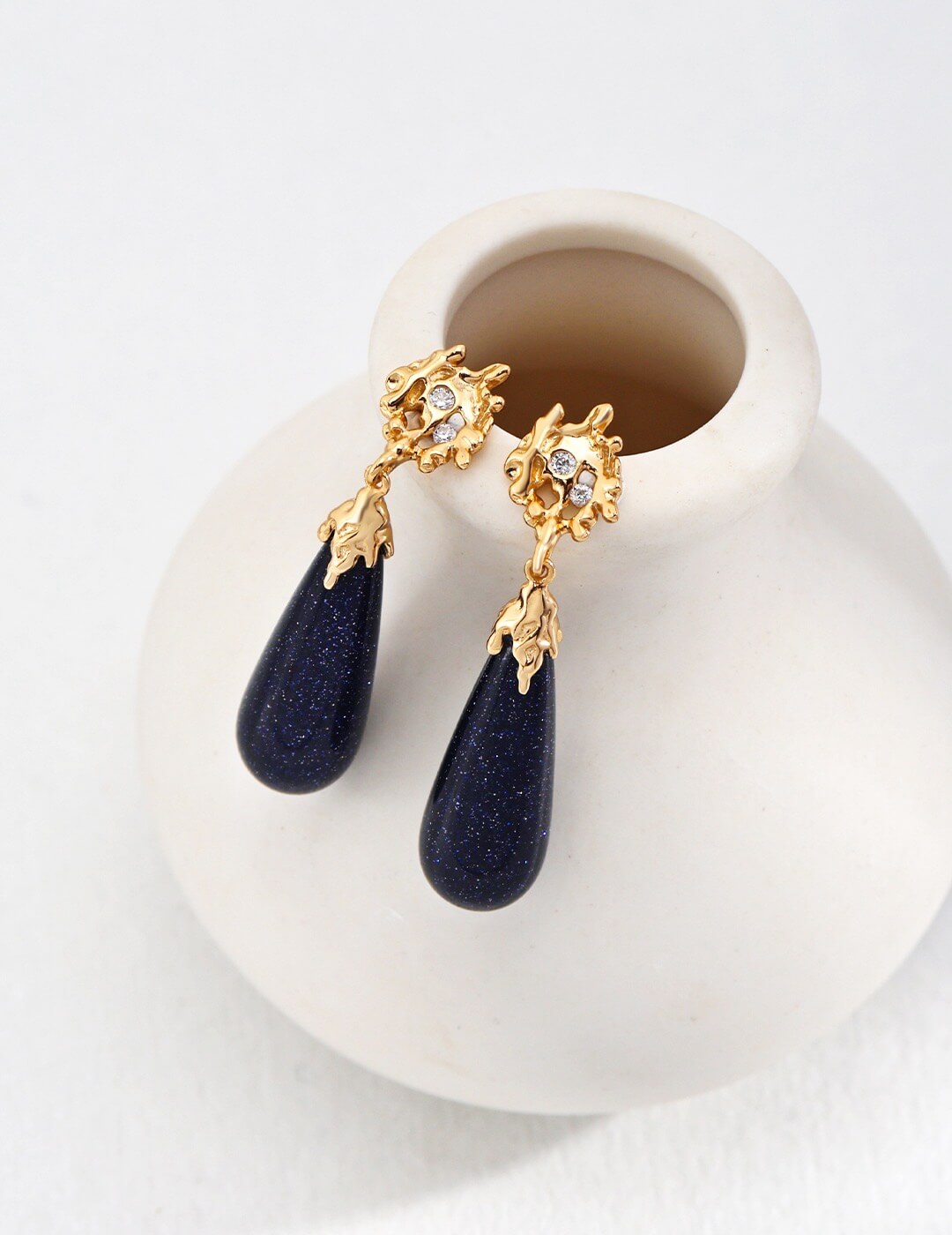 These earrings feature delicate droplets of blue sandstone, each one resembling a captured fragment of the ocean's depths.