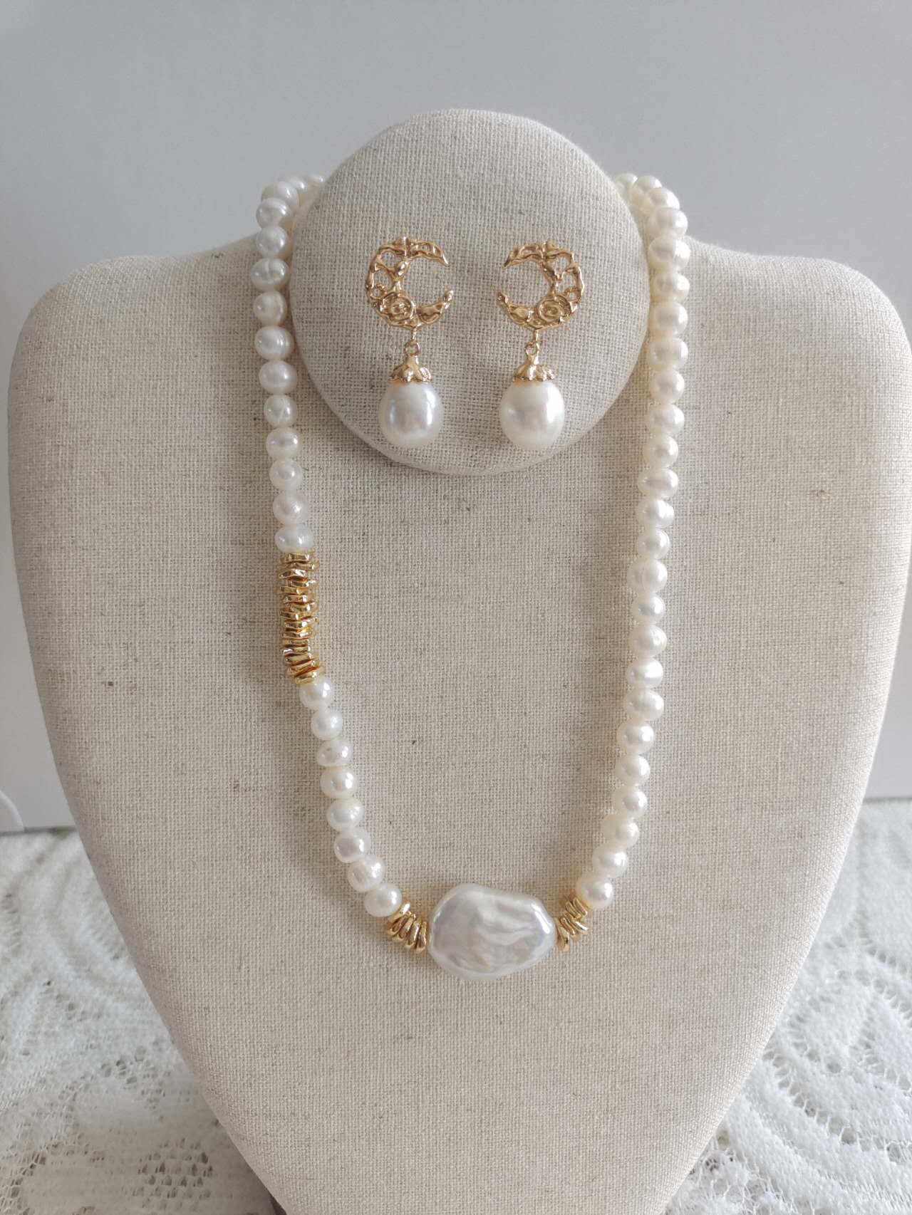 Baroque style necklace featuring intricate detailing, dramatic curves, and abundant embellishments.