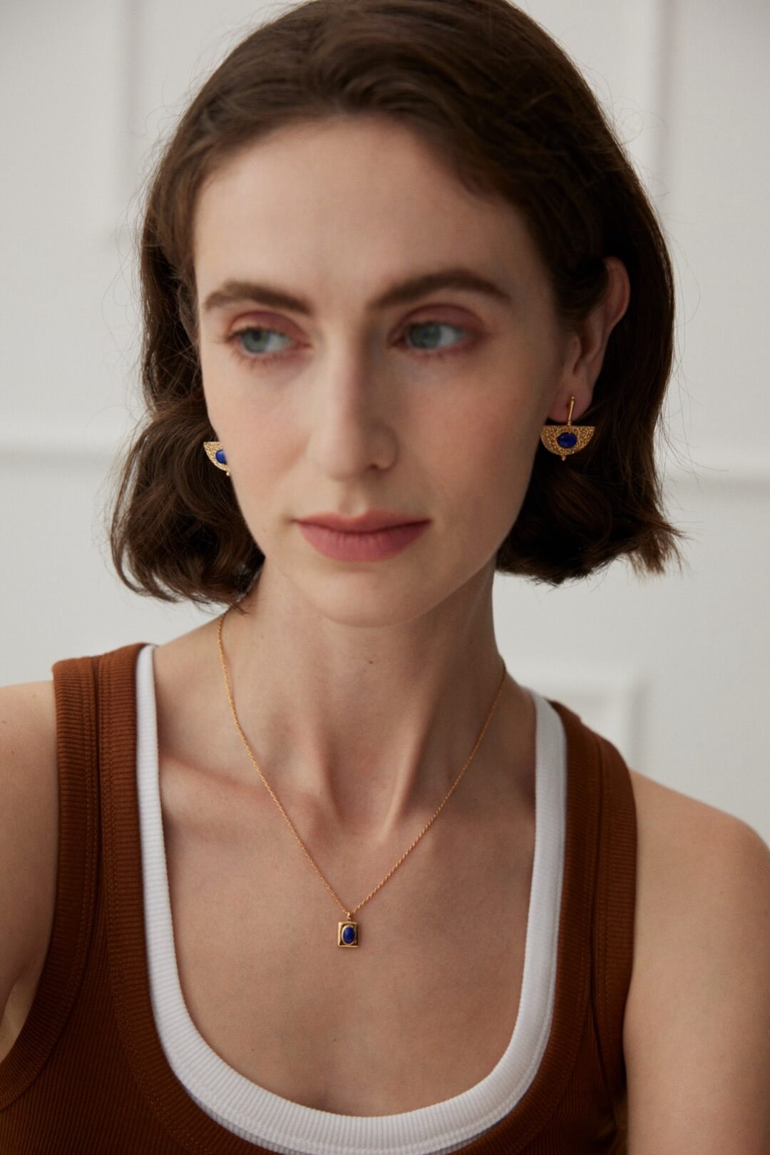 This Lapis lazuli stone necklace embody the essence of celestial beauty and ancient allure. Possessing a deep, velvety blue hue reminiscent of the night sky adorned with twinkling stars.