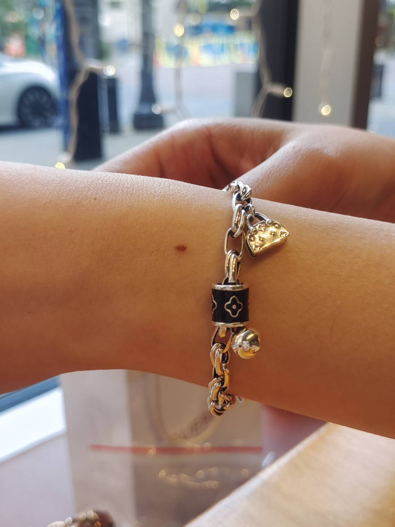 One of the special charm chain, with heavy style silver. You won't miss it.