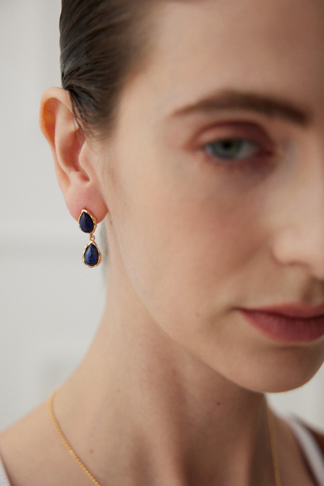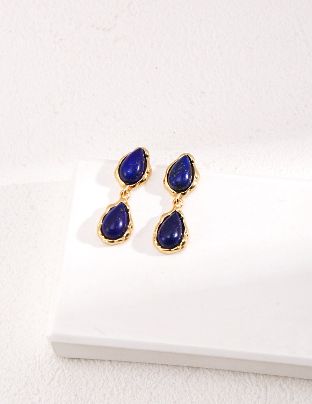 The pair of lapis lazuli stones are expertly polished to reveal their natural beauty, showcasing intricate patterns of golden pyrite flecks and veining that resemble the constellations scattered across the cosmos. Their smooth, lustrous surfaces exude a sense of timeless elegance and mystique.