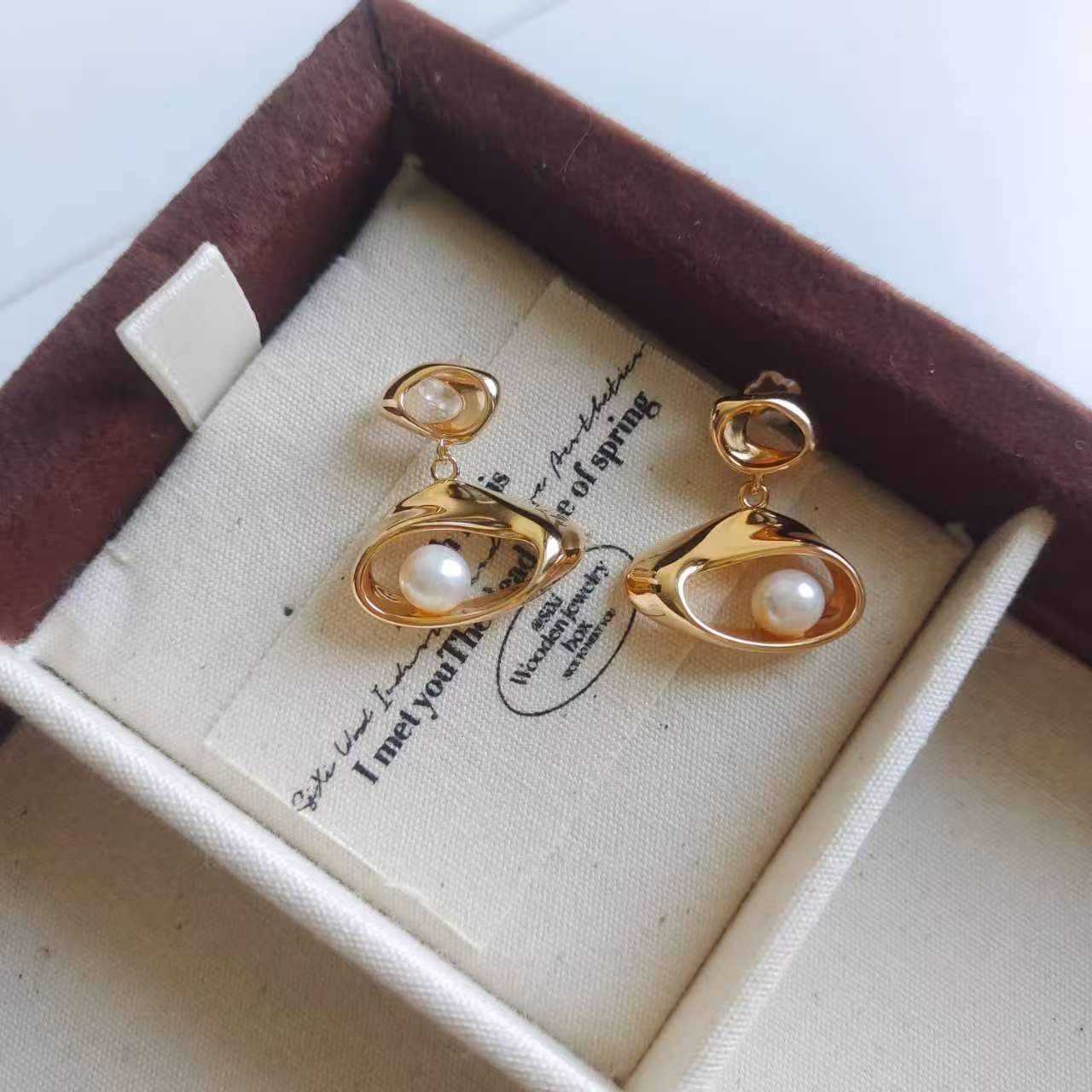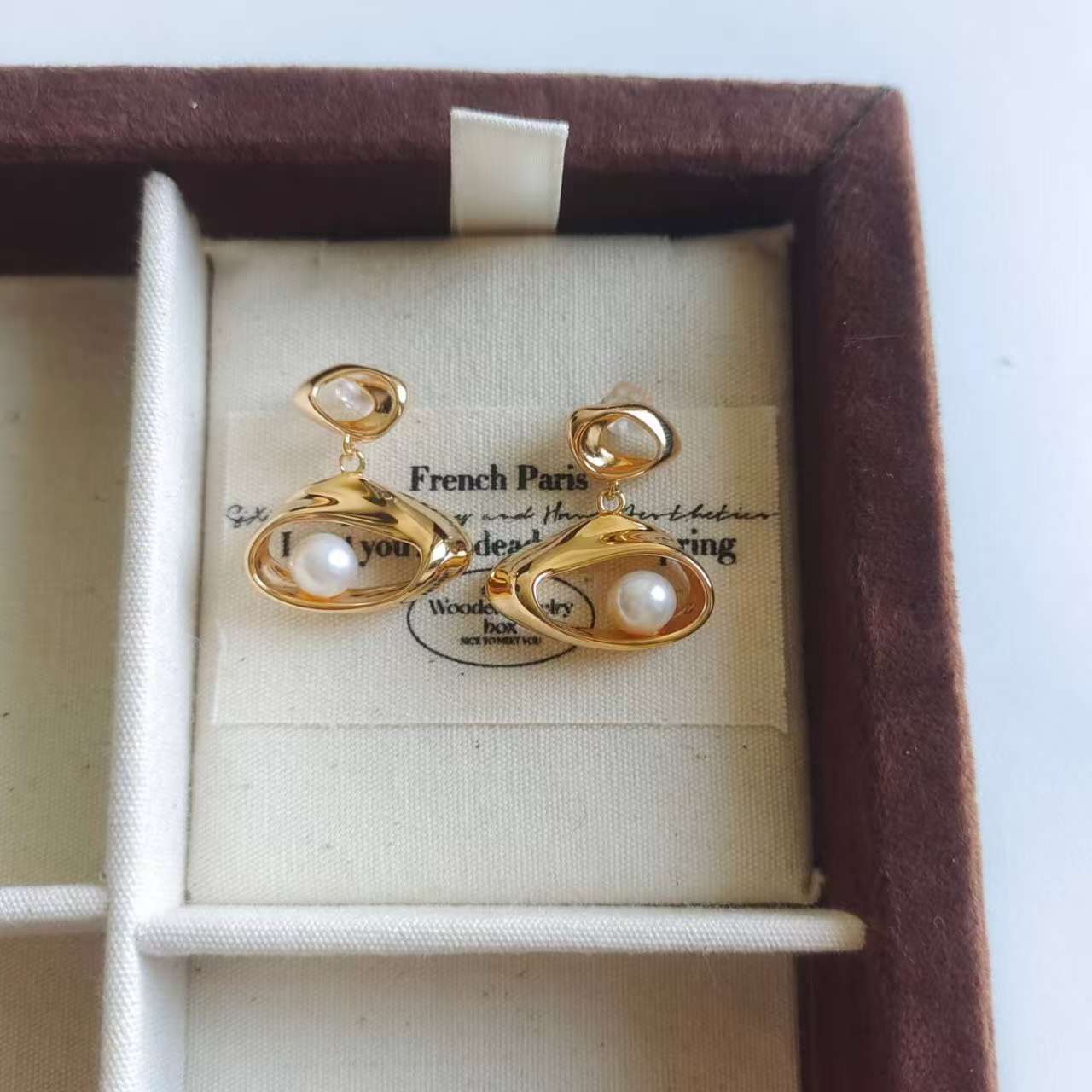 -exudes artisanal charm with its unique baroque pearls set in intricately designed sterling silver (S925) frames, finished in a warm antique gold tone. Each irregularly shaped pearl showcases nature's organic beauty, enhanced by delicate vintage-inspired metalwork for a one-of-a-kind romantic aesthetic. Statement-making, these earrings effortlessly elevate both casual and formal looks with their timeless, artistic allure.