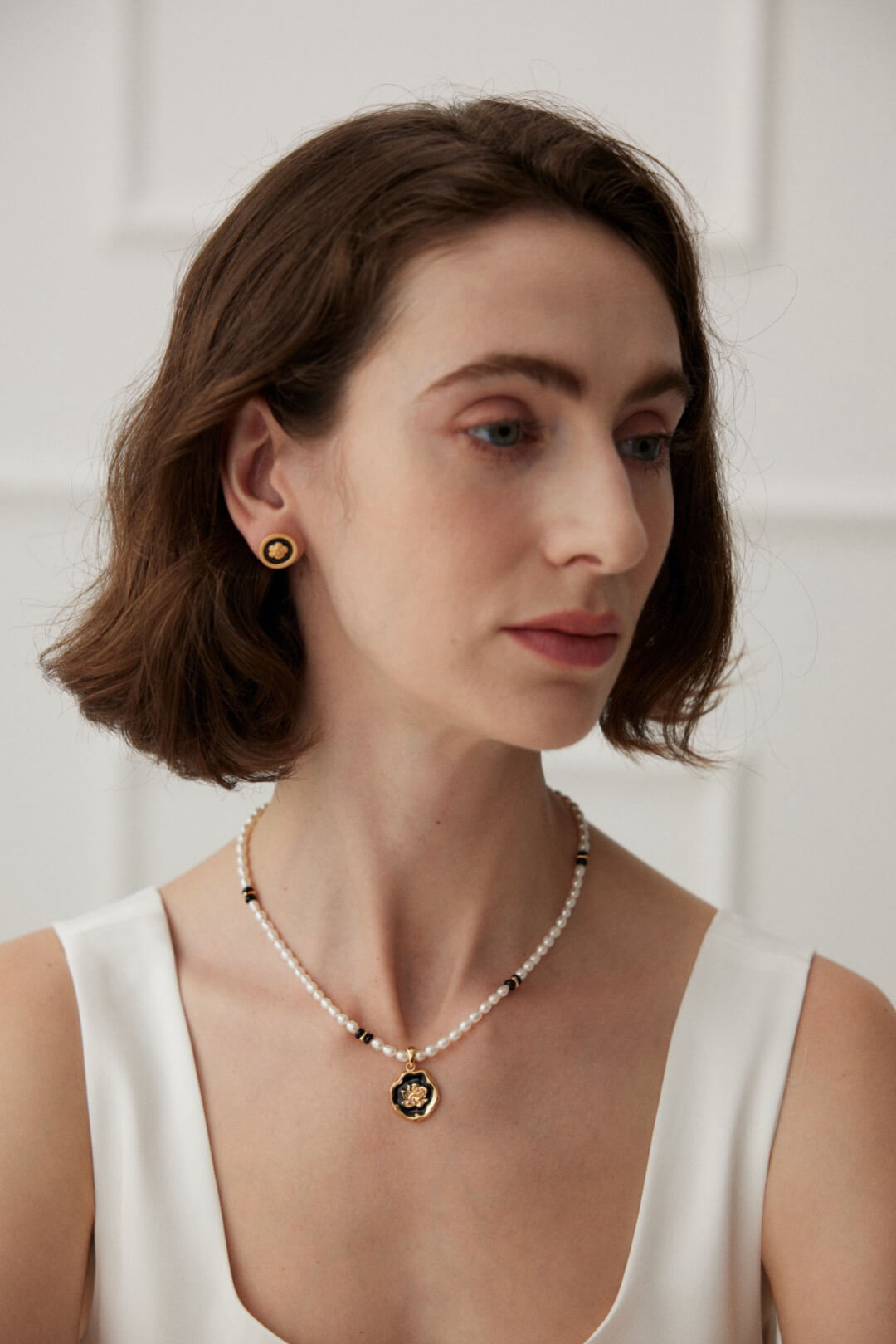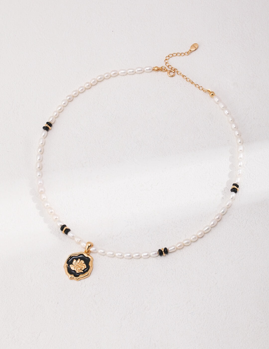 Material: 925 silver/ Natural Pearl /enamel/ black agate