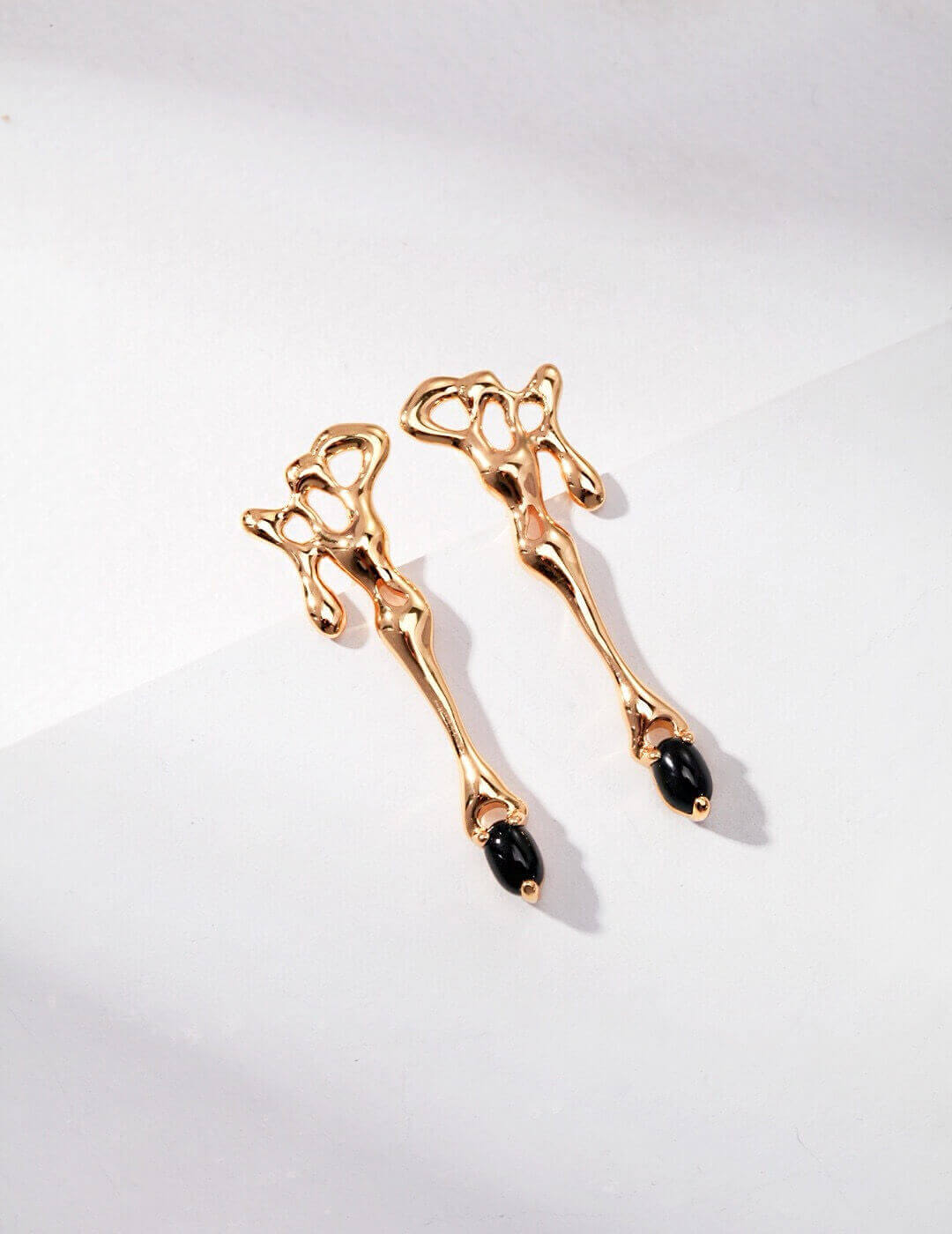 Natural element design, irregular silver liquid posture freely extended, inlaid with natural black agate